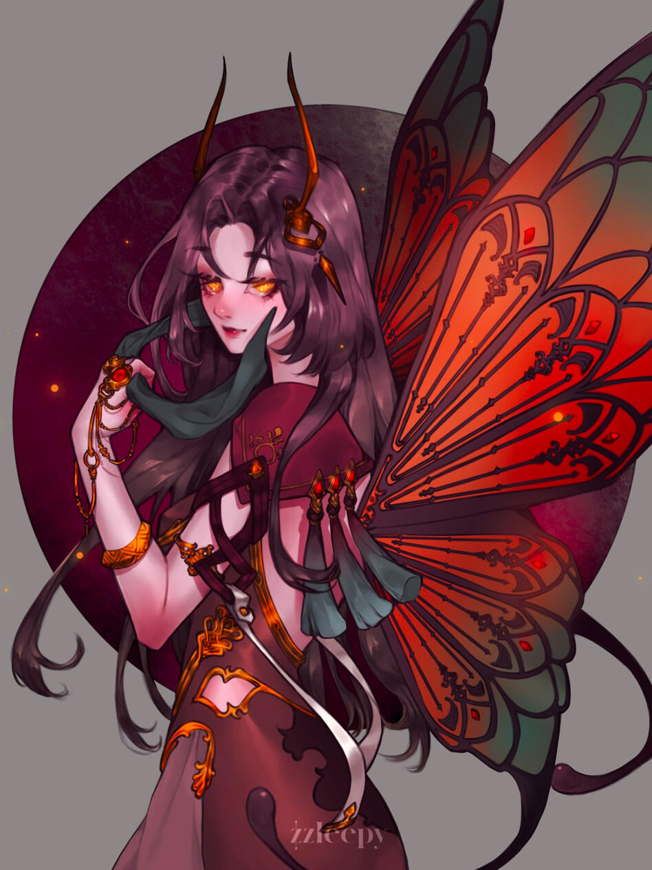 in the midst of a midsummer’s night dream, a butterfly is born into a colony of moths.— — —she pulls free the ribbon that had been tied around her eyes for years and years, that had left her blind to the world and it's creatures and herself, letting it flutter to the ground. heart thrumming in his chest as wildly as a war cry, she looks into the mirror and with a little gasp, her hands clasp themselves over her lips.the wings that had been the bane of her, that had every moth with their dull wings in the kingdom scoff at her...those wings that she had wished day and night to tear from her body—they cannot be the ones rooted to her back now, stained in whorls of paint and crafted from sea glass, undoubtedly-"beautiful," she whispers, and the word comes out as a sob.beautiful, she is beautiful.